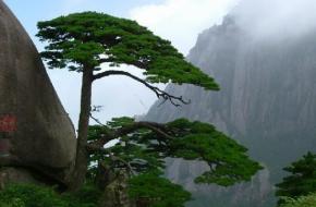 黃山松是由黃山獨特地貌、氣候而形成的中國松樹的一種變體。黃山松一般生長在海拔800米以上的地方,通常是黃山北坡在1500-1700米處,南坡在1000-1600米處。黃山松的千姿百態和黃山自然環境有著很大的關系。黃山松的種子能夠被風送到花崗巖的裂縫中去,以無堅不摧、有縫即入的鉆勁,在那里發芽、生根、成長。黃山泥土稀少,但花崗巖中肉紅色的長石中含有鉀,夏天雷雨后空氣中的氮氣變成氮鹽,可以被巖層和泥土吸收,進而為松樹的根系吸收;松樹的根系不斷分泌一種有機酸,能慢慢溶解巖石,把巖石中的礦物鹽類分解出來為己所用;花草、樹葉等植物腐爛后,也分解成肥料;這樣黃山松便在貧瘠的巖縫中存活、成長。地勢崎嶇不平,懸崖峭壁縱橫堆疊,黃山松無法垂直生長,只能彎彎曲曲地甚至朝下生長。由于要抗暴風御冰霜,黃山松的針葉短粗,冠平如削,色綠深沉,樹干和樹枝也極堅韌,極富彈性。黃山松的另一特點是,由于風吹日曬,許多松樹只在一邊長出樹枝。黃山松姿態堅韌傲然,美麗奇特,但生長的環境十分艱苦,因而生長速度異常緩慢,一棵高不盈丈的黃山松,往往樹齡上百年,甚至數百年;根部常常比樹干長幾倍、幾十倍,由于根部很深,黃山松能堅強地立于巖石之上,雖歷風霜雨霜卻依然永葆青春。