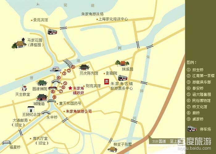 (老成都路大沽路交叉口)專線——滬朱專線(最高票價:9元)車程1小時45分鐘到達朱家角鎮(zhèn)。